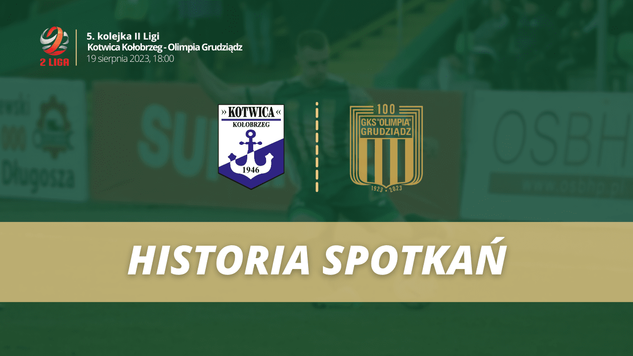 Historia spotkań Olimpii z Kotwicą opiera się na „pamiętnym” sezonie 2021/2022. „Biało-zieloni” u siebie przegrali 0:1, natomiast z Kołobrzegu Grudziądzanie przywieźli do domu 3 punkty, wygrywając na wyjeździe 2:0.
