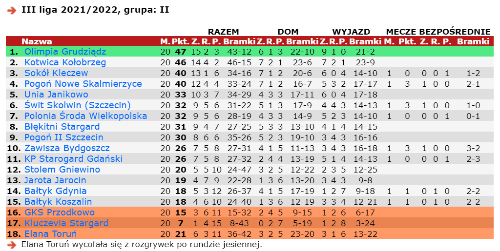 Drużyna na co dzień występująca na boiskach PKO Ekstraklasy przez 2 godziny tylko raz znalazła sposób na pokonanie Adriana Olszewskiego. Być może sprawdzi się przysłowie „do trzech razy sztuka” i Olimpia w trzecim meczu ligowym w 2022 roku zagra na „zero” z tyłu? Najbliższy rywal podopiecznych Marcina Płuski – Jarota Jarocin – to zespół znajdujący się dopiero na 13. miejscu z bilansem 4-7-9. Faworytem są biało zieloni, zwłaszcza, że w obecnym sezonie wygrali 9 z 10 spotkań wyjazdowych.