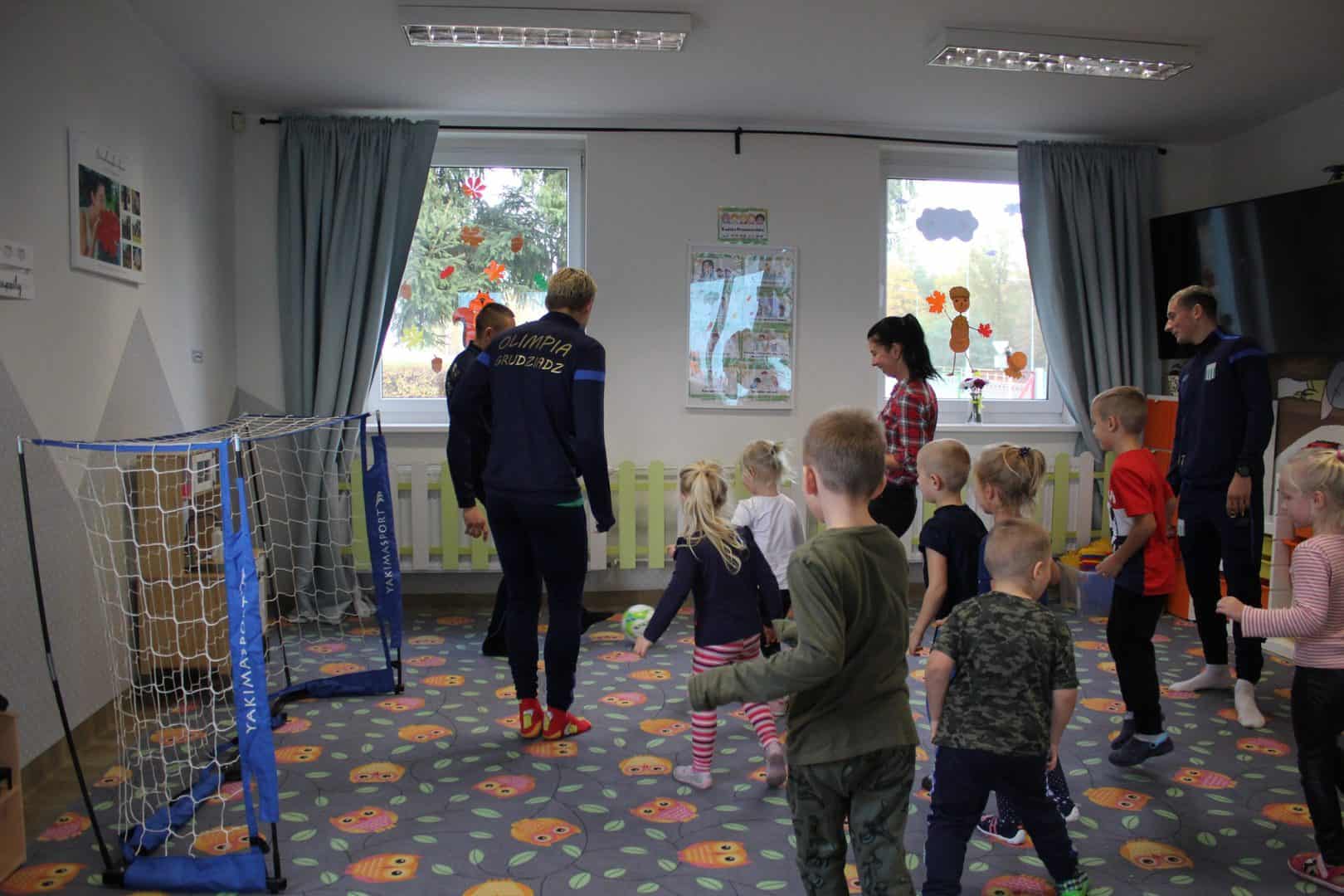 Nie zabrakło również gier i zabaw ruchowych. Dzieci miały okazję zagrać w piłkę wspólnie z zawodnikami grudziądzkiej Olimpii.