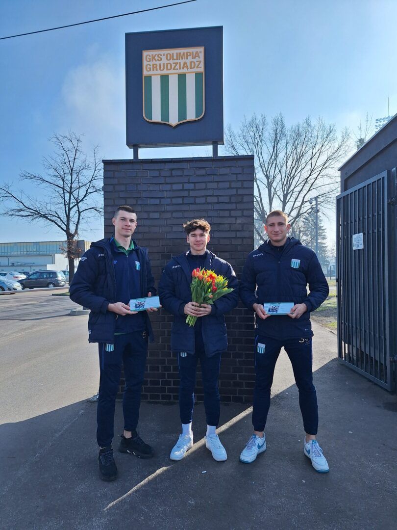 Z okazji Dnia Kobiet, delegacja Olimpii Grudziądz wybrała się na spacer po mieście, gdzie obdarowali kobiety kwiatami i voucherami na nadchodzące mecze biało-zielonych!