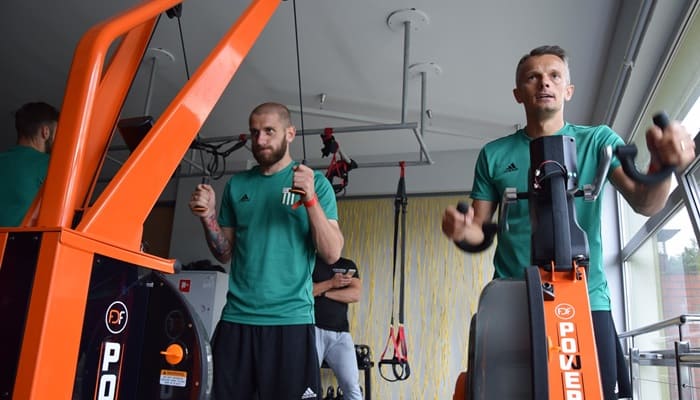 Biało -zieloni zanim skorzystali z sauny, jacuzzi i basenów solankowych, wypróbowali nowość w Polsce i w Grudziądzu – sprzęt „PowerZone”, gdzie pod okiem trenera personalnego Adama Różańskiego wykonali po kilka powtórzeń.